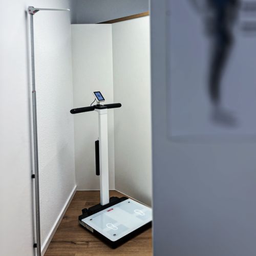 Mit unserem mBCA Alpha des Herstellers seca erhalten wir innerhalb weniger Sekunden medizinisch präzise Messergebnisse. Die Messung erfolgt über eine 8-Punkt-Bioimpedanzanalyse auf mehreren Frequenzen und analysiert sieben Körpersegmente. Die Ergebnisse sind wissenschaftlich validiert und entsprechen dem Goldstandard (97% MRT-Übereinstimmung).